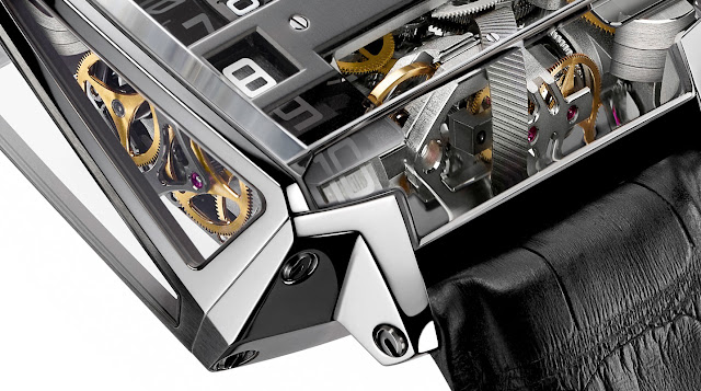Côté mouvement, la construction modulaire permet d'apprécier avant tout le travail effectué sur le VMF4000: c'est fini avec soin mais visuellement, c'est un peu frustrant car la partie visible diffère peu de celle d'une montre simple. Vous noterez le rotor caractéristique qui reprend le logo de la marque.