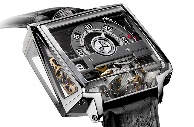 La deuxième montre est le Calendrier Perpetuel. De nouveau, nous retrouvons la construction modulaire mais cette fois-ci, la base et le module proviennent de Vaucher: pas de surprise de ce côté là, nous reconnaissons à travers la présentation du cadran le module à aiguille rétrograde des quantièmes VMF5000.